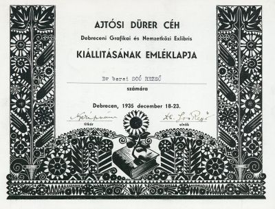 Occasional graphics - Announcement card: The exhibtion of the Ajtósi Dürer's Guild