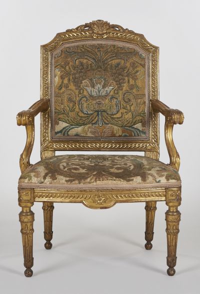 Techniques: | carved; gilded; raised embroidery; upholstered |