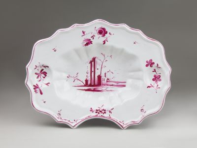 Techniques: | cast (presumably); painted with purple (purpur); tin-glazed |