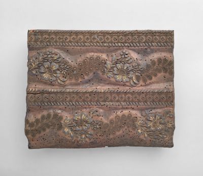 Techniques: | hammered with nails; relief carving |