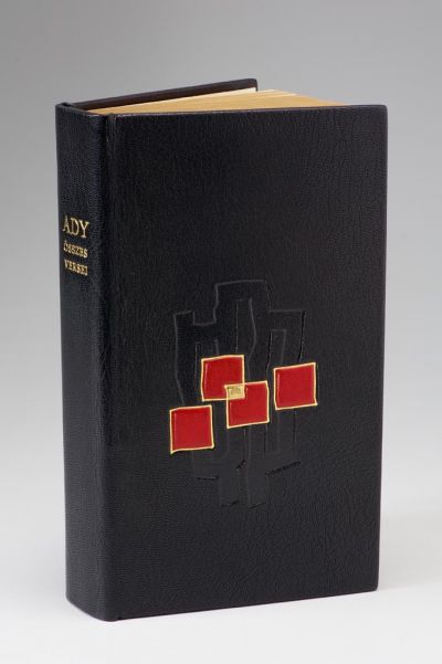 János Szirmai designed a new binding for Endre Ady’s collected poems published by Athenaeum. The subtly elegant binding of oasis leather was a donation to the collection. Many different binding techniques were used for its execution.
