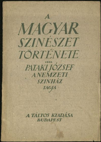 Book jacket - for the work "A magyar színészet története" (The history of Hungarian acting) by József Pataki
