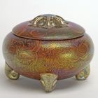 | Techniques: | acid-etched base glaze; cast in mould/slip-cast; painted with eosin glazes |