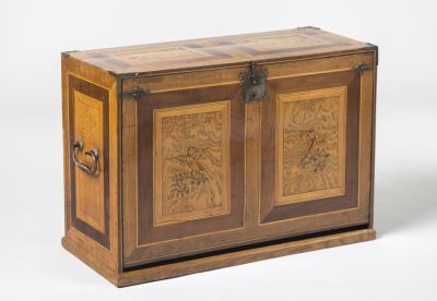 Materials: | ash veneer; boxwood stained green; elm inlay; maplewood inlay; oak inlay; pearwood inlay; pinewood base |
