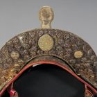 | Materials: | leather; nephrite; ruby; silk fabric brocaded with silver thread; silver gilt plate; wooden frame |