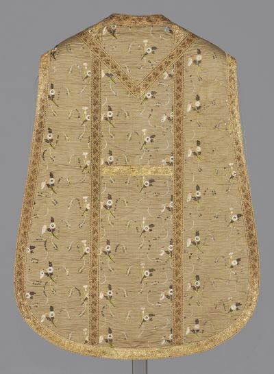 Materials: | glass beads; repp silk (ribbed silk fabric); silk yarn; spangle |