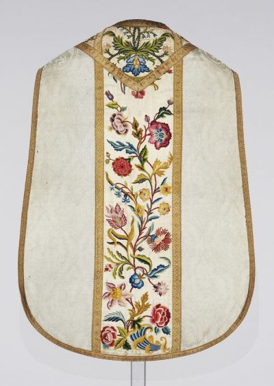 Materials: | gold coloured metal yarn; linen (presumably); silk (presumably) |