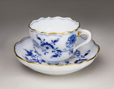 Coffee cup with saucer - With the so-called onion pattern or Zwiebelmuster (part of a tableware set for 12 persons)