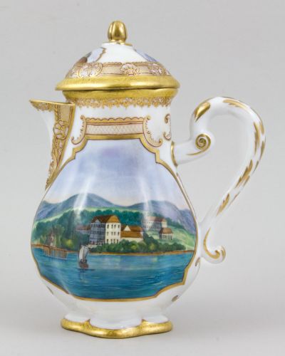 Coffee pot with lid (part of a set) - Coffee service with scenes of Balatonfüred and Tihany