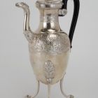 New information often emerges even about well-known, much published objects, which adds to the results of previous research. This happened in the case of the famous coffee set, which its maker prepared as a gift to the family who supported his studies. Previously it was believed that this four-piece coffee set was made for the family mansion in Boldva in Gömör County, but descendants of the family have stated that Pál Szathmáry Király (1780–1852) and his wife, Anna Levai Koos (1793–1845), lived in Jánosi (Gomor County), just south of Rimaszombat (today Rimavska Sobota, Slovakia). The representative set was thus made in 1823 for the owners of the mansion in Jánosi, by József Szentpéteri (1781–1862), the greatest goldsmith of 19th century Hungary. The characteristic decorative motif, the sculpturesque figures of swans, has given the set its name, the Swan set. On the oval rim of the platter, neo-classical openwork decoration of vines and leaves run around. The two pots are only different in size. Their tall and curved bodies stand on clawed feet with acanthus leaves, and their necks are decorated with flowers and leaves. The lids have a ribbed rim, with a cast figure of swan on top. The pouring spout ends in a curved head of a bird, rising from acanthus leaves. The round foot of the sugar bowl is decorated with sedge leaves, its two handles are formed by swans. The piece was left by the Szathmáry Király family to the Csáky, later to the Máriássy family, and finally to the Museum of Applied Arts.