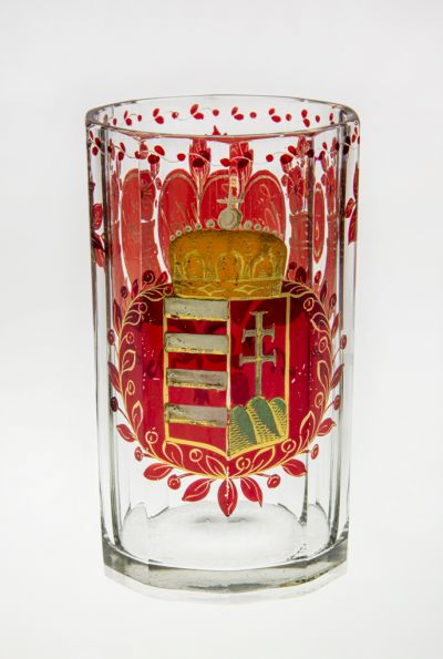Techniques: | gilded; ground to planes; mould-blown; polychrome enamel painting; stained with copper ruby |