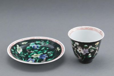 Cup and saucer - With flowers growing from cliffs and insects; from the collection of Augustus II the Strong, Elector of Saxony and King of Poland; marked No. 49