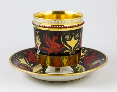 Cup and saucer - With the figures of unicorned griffins