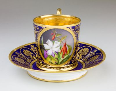 | Inscription: | csésze: alján, a masszába karcolva: H; P; máz felett kobaltkékkel pecsételve: két egymásba kapcsolódó L betű, amelyek anjou liliomot és / 'Sevres' feliratot zárnak közre; csészealj: a masszába karcolva: SD; háromnegyed körív; függőleges vonal; Z |
