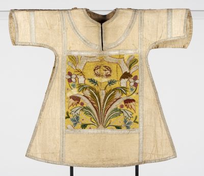 Techniques: | embrodiered with flat stich; metal thread raised embroidery |