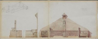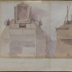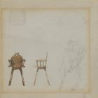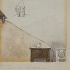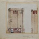 These seven pages belong to the hardly known, early designs of Lajos Kozma, made while at university. It is an independent series of sketches, created partly under the influence of folkloric pieces but following the usual type of a middle-class bedroom. It proves Kozma's professional and graphic virtuosity with its refined watercolour technique and also documents the early roots of his designer activity. These sketches are connected to his secondary school years and the collection of relics of