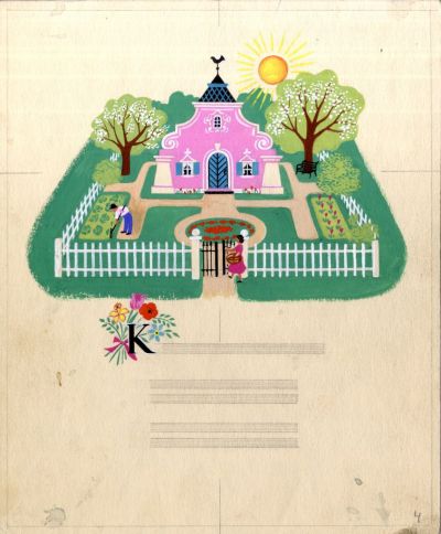 This piece is a fine example of harmonizing the work of the poet and that of the graphic designer. Erzsi Gazdag specifically asked her publisher to employ Kató Lukáts as the illustrator of her works. Our collection holds all illustration designs for this volume. Along with the images, the artist was also responsible for the complete graphic design, from the fonts and layout to the title page and cover. This drawing exemplifies her elegant style, which is always a perfect match for the text.