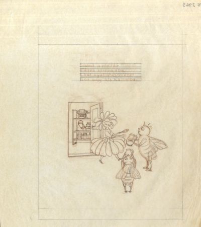 This piece is a fine example of harmonizing the work of the poet and that of the graphic designer. Erzsi Gazdag specifically asked her publisher to employ Kató Lukáts as the illustrator of her works. Our collection holds all illustration designs for this volume. Along with the images, the artist was also responsible for the complete graphic design, from the fonts and layout to the title page and cover. This drawing exemplifies her elegant style, which is always a perfect match for the text.