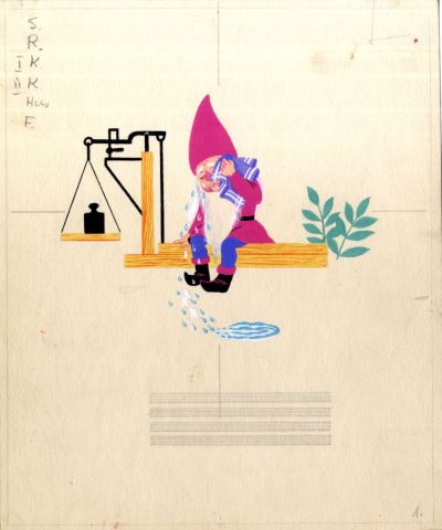 This piece is a fine example of harmonizing the work of the poet and that of the graphic designer. Erzsi Gazdag specifically asked her publisher to employ Kató Lukáts as the illustrator of her works. Our collection holds all illustration designs for this volume. Along with the images, the artist was also responsible for the complete graphic design, from the fonts and layout to the title page and cover. This drawing exemplifies her elegant style, which is always a perfect match for the text.