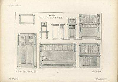 • Szerk.: Ráth György: Bútoripari mintalapok iparosok és ipariskolák számára. Magyar Iparművészeti Társulat, Budapest, 1903. - III. füzet, 4. lap.