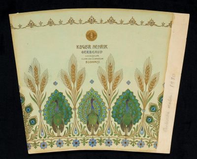 The cylindrical, delicate and elegant sweets box design was made for Henrik Kugler, who was at that time owner of the Gerbeaud confectionary. It is decorated with two popular motifs of Art Nouveau: the peacock and wheat, alternating. The box is lined with cornflowers at the bottom.