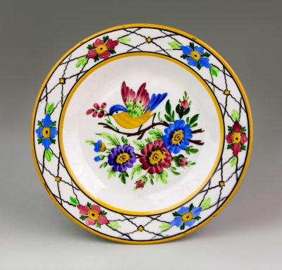 Techniques: | painted under glaze with stencil; transparent glaze |