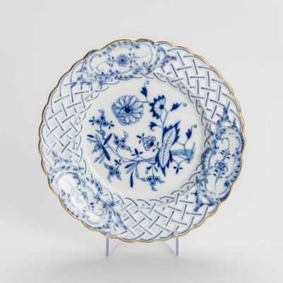 Dessert plate - With pierced rim, with the so-called onion pattern or Zwiebelmuster (part of a tableware set for 12 persons)