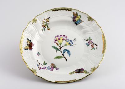 Inscription: | alján, máz felett kobaltkékkel festve: koronás címer / a masszába nyomva: HEREND; négyzetes matricán: koronás magyar címer / 1839; HEREND / (HONGRIE) / No.: 1525 / / Prix: VBA (?) |