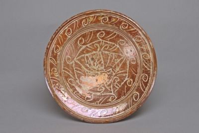 The rim of the bowl is decorated with volutes the interior has bands of volute and leaf decoration.