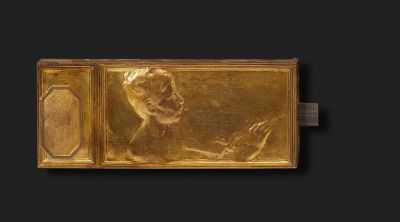 Lying rectangular plaque, applied separately over an octagonal knob lock mechanism of two parts. The relief on the plaque shows the bust of a young man, looking to the right, holding a brush and a palette - the allegory of Painting. The door locks with plaques were exhibited at the 1898 exhibition of Modem Arts in the Budapest Museum of Applied Arts, together with the objects of Inv.Nos. 10.502 and 10.503 - they were purchased at that time. The copies of the plaques, without the door lock, can be found in the Museum of Fine Arts in Budapest, Inv.No. 66-4 P (Painting) and Inv.No. 66-5 P (Sculpture). For the pictures of further copies in the Victoria and Albert Museum in London see Weisberg 1986 ill. 237 (Painting) and ill. 238 (Sculpture). The plaque pair was also exhibited at the 1902 Torino International Applied Arts Exhibition.