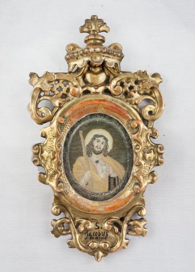Embroidered devotional picture - With the depiction of St. James the Apostle