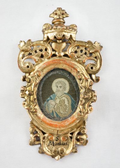 Embroidered devotional picture - With the depiction of St. Matthias the Apostle