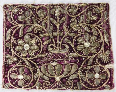 Techniques: | embrodiered in gold thread; raised embroidery |