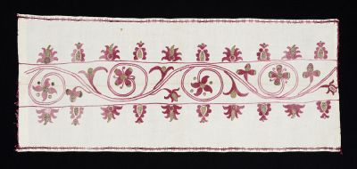 Materials: | gold coloured metal yarn; linen (presumably); silk yarn |
