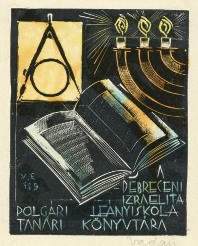 Ex-libris (bookplate) - Teachers' Library in the Israelite Civic Girls' School in Debrecen