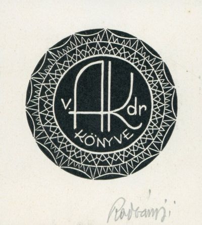 Ex-libris (bookplate) - Book of Dr. V. AK. (Kálmán Arady of Vizkelet)