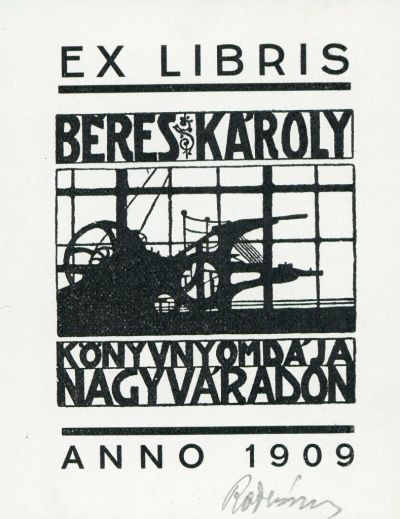 Ex-libris (bookplate) - Book printing house of Károly Béres in Nagyvárad Anno 1909