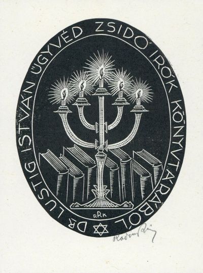 Ex-libris (bookplate) - Dr. István Lustig, lawyer from the library of Jewish writers