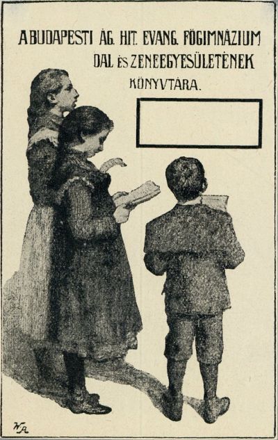 Ex-libris (bookplate) - Library of the Song and Music Society of the Apostolic Faith Evangelical High School of Budapest