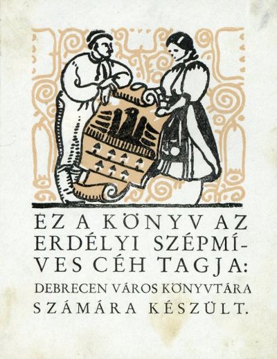 Ex-libris (bookplate) - This book is a member of the Transylvanian Guild of Fine Arts: was written for the library of the city of Debrecen