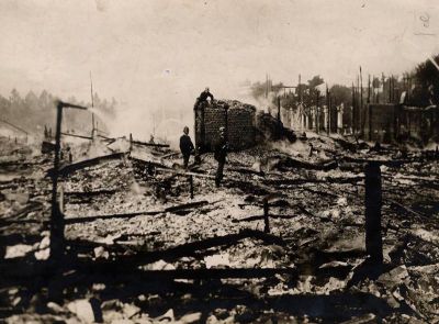 Exhibition photograph - A burnt-out Italian group, Milan Universal Exposition 1906