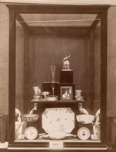 Exhibition photograph - artworks of Józsefné Keszler's collection at the exhibition of " Amateur Collectors" of the Museum of Applied Arts 1907 (XXX. vitrine)