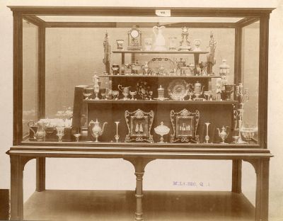 Exhibition photograph - artworks of Selma Strasser-Feldau's collection at the exhibition of " Amateur Collectors" of the Museum of Applied Arts 1907 (XIV. vitrine)