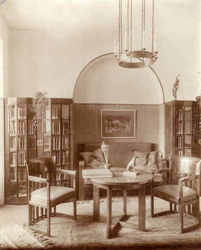 Exhibition photograph - bachelor's study furniture designed by József Bábolnay, Exhibition of Interior Design 1912