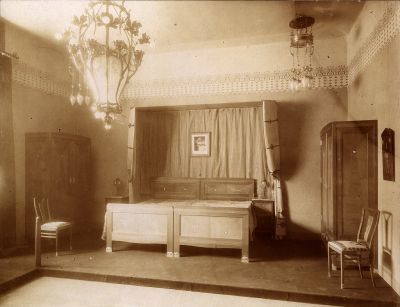 Exhibition photograph - bedroom furniture designed by Ödön Faragó, Christmas Exhibition of The Association of Applied Arts 1904