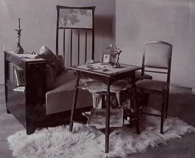 Exhibition photograph - boudoir furniture designed by Ede Toroczkai Wigand, Christmas Exhibition of The Association of Applied Arts 1900 (the boudoire of Károlyné Lyka)