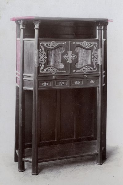 Exhibition photograph - cigar cabinet designed by Jenő Nagy, Christmas Exhibition of The Association of Applied Arts 1898