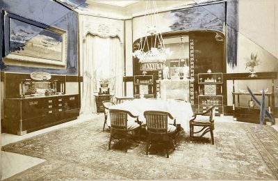 Exhibition photograph - dininig room furniture of Endre Thék, Christmas Exhibition of The Association of Applied Arts 1903