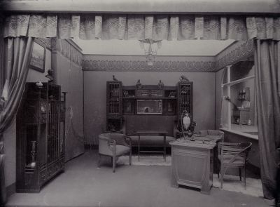 Exhibition photograph - drawing room furniture designed by Lajos Simay, Christmas Exhibition of The Association of Applied Arts 1902