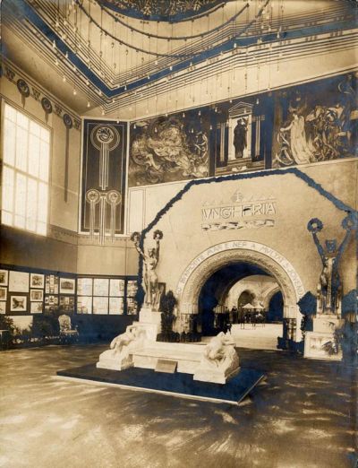 Exhibition photograph - entrance hall of the second Hungarian Pavilion, Milan Universal Exposition 1906